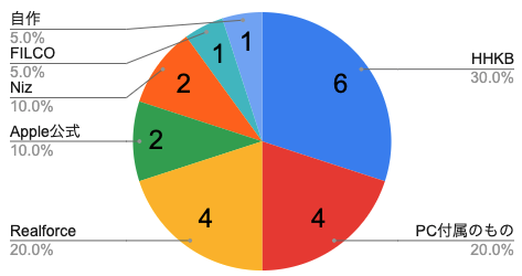 この結果には含まれていませんが、私も今年のクリスマスにHHKBデビューする予定です。HHKBは大人気な一方で、打鍵音がやや大きいため、「奥さんに不評なので、Apple公式のものと使い分けている」という意見も。 普段使うぶんには気になりませんが、ご家庭がある方は、特に音の問題は難しいですよね。 Nizを使っている人からは、「キーが軽くて深くてしっかり戻ってくるのでかなり打ちやすいです。キーバインドがないので Vim & tmux を使う方でも衝突しなくてよい」という声もありました。