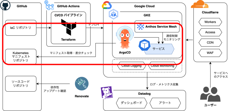 前回はRenovateによる依存関係の更新について解説しました。今回はArgo CD1を利用した、Kubernetesへの継続的デリバリ(Continuous Delivery、CD)について紹介します。Argo CDとは何か、なぜ使うのか、基本的な機能やキャディでどのように活用しているかを紹介します(図1)。