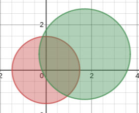 すると新しい円領域は $D(g)$ と表記できます。では2つの円領域 $D(f)$ と $D(g)$ の集合演算を考えましょう。
